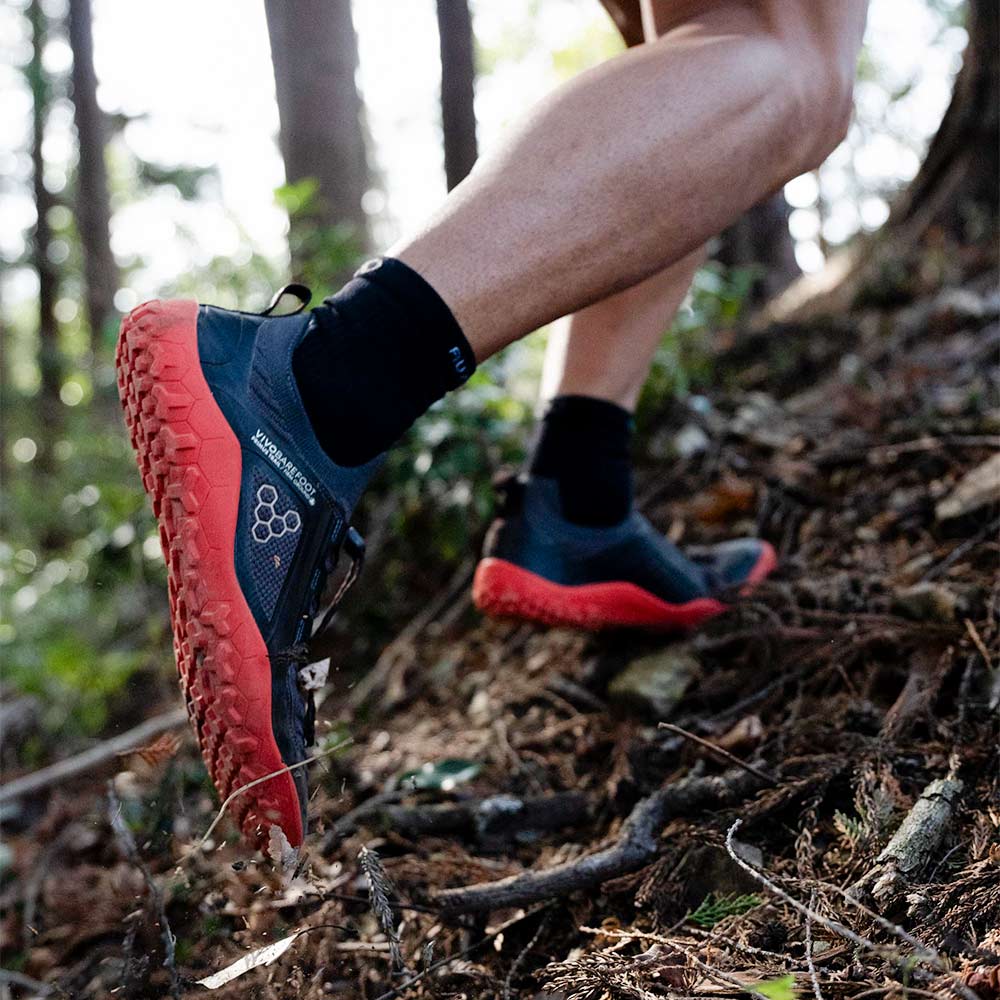 柔軟ながら岩場でもタフに履きこなす 足を第一に考えたトレイルシューズ ベアフットでもっと自然の中に繰り出そう!ファームグラウンド(FG)ソールは、まさに荒れた岩場に最適。足を保護しながら地面との一体感も得られます。ニット製のアッパーはより柔軟な動きを可能にし、優れた通気性は完全なる探検の歩みを止めません。 足も体も脳も野生に解放し、自然と再びつながりましょう。 特徴 自然な感覚、自由な動作 足型(靴型ではありません)のデザインで足を自然に動かせます。 WIDE(幅広)でもっと自然な安定感 THIN(極薄)でもっと感じられる FLEXIBLE(柔軟)でもっと自然な動作 ランニング、ウォーキング、ハイキングに最適。感覚フィードバックをフルに活かせる、グリップ力に優れたオフロードフットウェア。 シームレスな靴下のようなフィット感を採用したリサイクルニットアッパーは、砂や小石の侵入を防ぎながら、足の自然な動きを最大限に引き出します。 スピード・レーシング・システムにより、素早く靴ひもを締めたり、調整したりできるので、素早くトレイルに繰り出すことができます。 ベトナム製