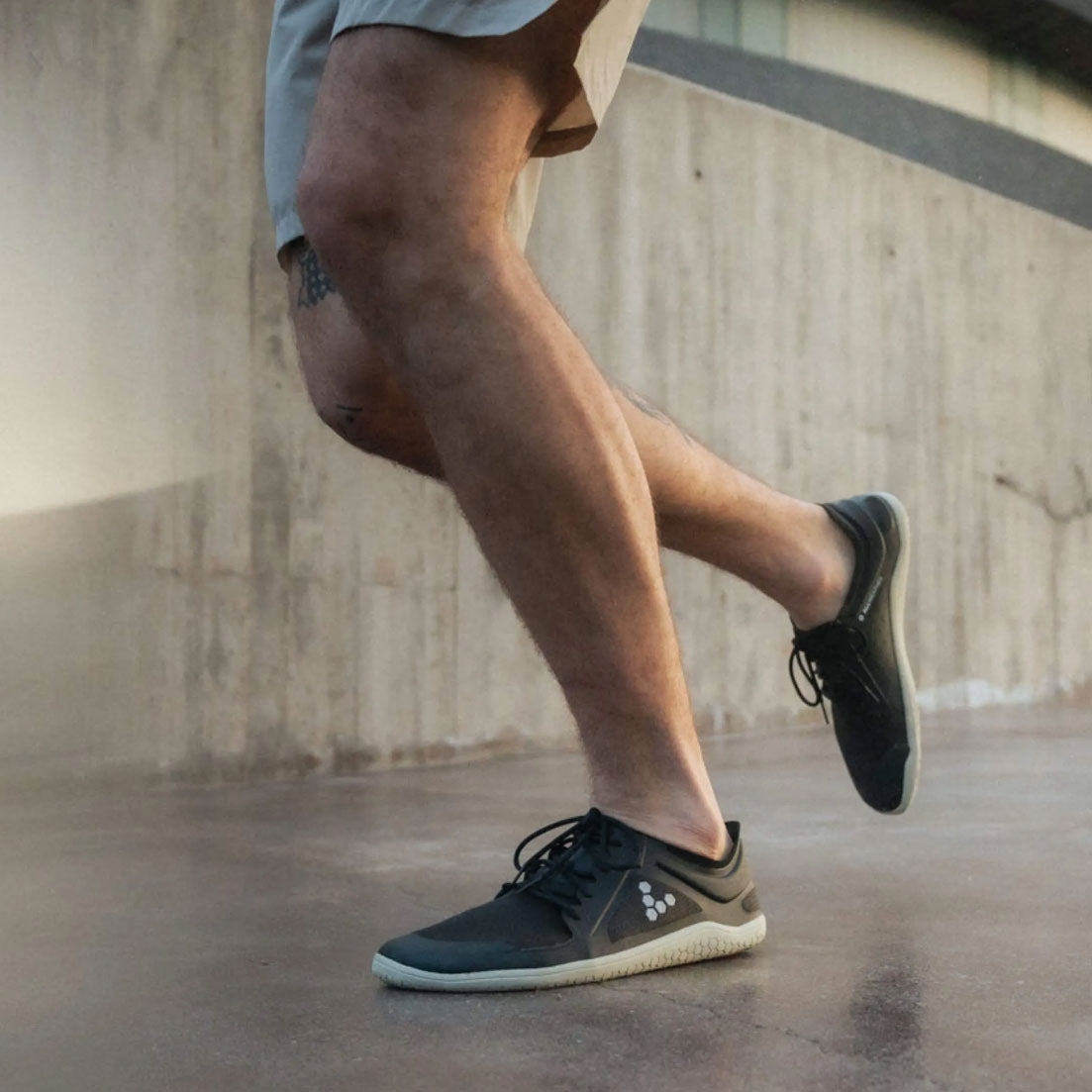 プライマスアウトソールは、足と地面をできる限り近づけるために設計された、軽くて薄い2mm厚のパフォーマンスアウトソールです。ソール側面は可能な限り低く、かかと部分に向かってわずかに低くなっています。つま先部分はアッパーと微妙に重なっており、自然な動きを損なうことなく、都市環境での十分な保護を提供しています。トレッドパターンは、多方向への柔軟性とグリップ力を高めるために、Vivobarefootの特徴である六角形のデザインを採用しています。