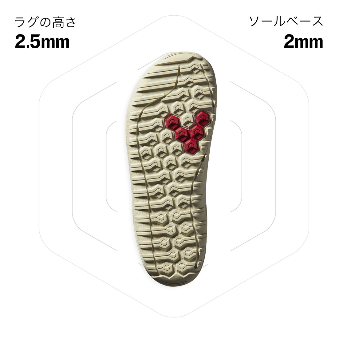 子どもたちが成長するには時間が必要なように、このベアフットシューズも何年もの歳月をかけて開発されました。トラッカー ATは、Vivobarefootのベストセラーモデルを子ども向けにアレンジしたミニバージョン。小さな冒険家たちのために、細部までこだわり抜かれています。新開発のアドベンチャーテレイン(AT)ソールで、どんな地面もしっかりグリップ!成長途中の足指を傷や衝撃から守りながら、子どもたちの探求心を存分に引き出します。