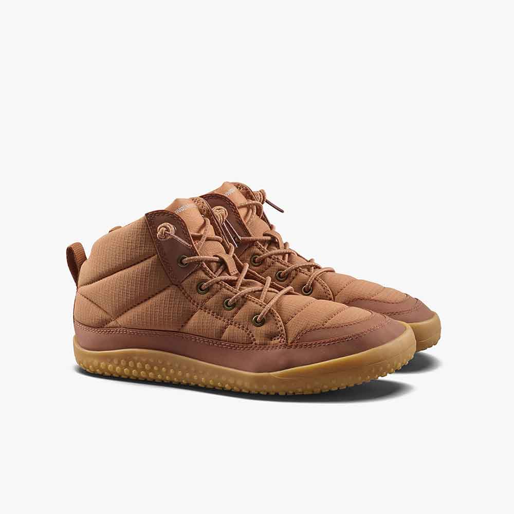 冬をもっとクールに、もっと快適に 新登場のゴビハイバーは、大人用のパッド入りブーツをジュニアサイズにアレンジしたハイカットスニーカーです。季節の人気アイテムである“ダウンジャケット”からインスピレーションを得てデザインされました。 リサイクル素材を使用した撥水テキスタイルが、アクティブに動く子どもたちの足をしっかりと守ります。見た目はふんわりしていても、驚くほどタフ。トレイルにも、普段履きにもぴったりの一足です。 特徴 まるで履くダウンジャケット キッズ・アーバンプレイアウトソールグリップ力と屈曲性を併せ持つ、バランス感覚を養いはじめた子ども向けアウトソール。 キッズ用フェイクシアリングインソールあたたかく柔らかいフェイクシアリングとフェルトのインソールで、寒い日でも子どもたちの足先を快適にキープ。気温が穏やかな日には取り外し可能で、蒸れにくく快適に保ちながら、遊びをもっと長く楽しめます。 ヴィーガン**Vivobarefootのヴィーガン製品に使用されている主な素材は合成素材で、動物由来のものではありません。ただし、製品に使用される接着剤や染料などの細かい部品の製造過程において、ヴィーガンのもっとも厳しい基準を満たしているかどうかの透明性を現時点では完全に確保できていません。そのため、これらのシューズはヴィーガンであると考えていますが、まだ確実に断言できる段階ではありません。この点について正直にお伝えしたいと考えています。 保温ライニング極寒の環境でも足元を暖かく快適に保つ、保温仕様のライニング。 耐水性耐水性のある素材と、非吸水性の素材を使用しています。 重量片足 205.1g