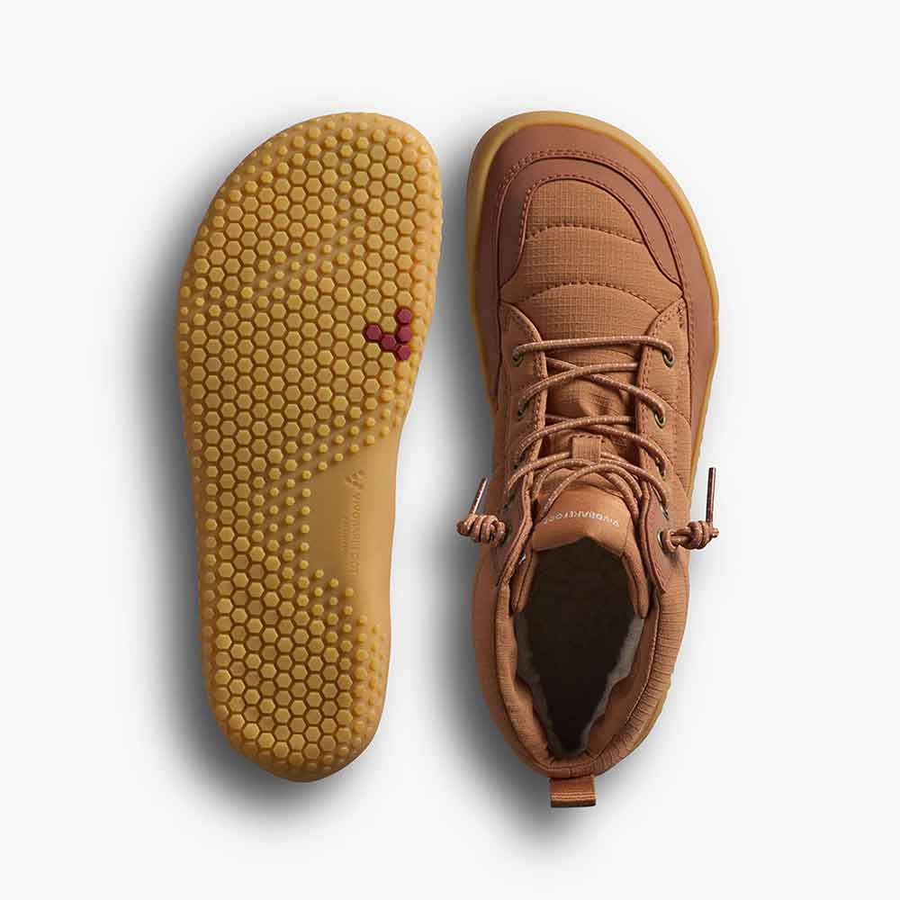 冬をもっとクールに、もっと快適に 新登場のゴビハイバーは、大人用のパッド入りブーツを子どもサイズにアレンジしたハイカットスニーカーです。季節の人気アイテムである“ダウンジャケット”からインスピレーションを得てデザインされました。リサイクル素材を使用した撥水テキスタイルが、アクティブに動く子どもたちの足をしっかりと守ります。見た目はふんわりしていても、驚くほどタフ。アウトドアに出かけるときも、公園で遊ぶときも活躍します。 特徴 まるで履くダウンジャケット キッズ・アーバンプレイアウトソールグリップ力と屈曲性を併せ持つ、バランス感覚を養いはじめた子ども向けアウトソール。 キッズ用フェイクシアリングインソールあたたかく柔らかいフェイクシアリングとフェルトのインソールで、寒い日でも子どもたちの足先を快適にキープ。気温が穏やかな日には取り外し可能で、蒸れにくく快適に保ちながら、遊びをもっと長く楽しめます。 ヴィーガン**Vivobarefootのヴィーガン製品に使用されている主な素材は合成素材で、動物由来のものではありません。ただし、製品に使用される接着剤や染料などの細かい部品の製造過程において、ヴィーガンのもっとも厳しい基準を満たしているかどうかの透明性を現時点では完全に確保できていません。そのため、これらのシューズはヴィーガンであると考えていますが、まだ確実に断言できる段階ではありません。この点について正直にお伝えしたいと考えています。 保温ライニング極寒の環境でも足元を暖かく快適に保つ、保温仕様のライニング。 耐水性耐水性のある素材と、非吸水性の素材を使用しています。 重量EU22 片足 99.5g