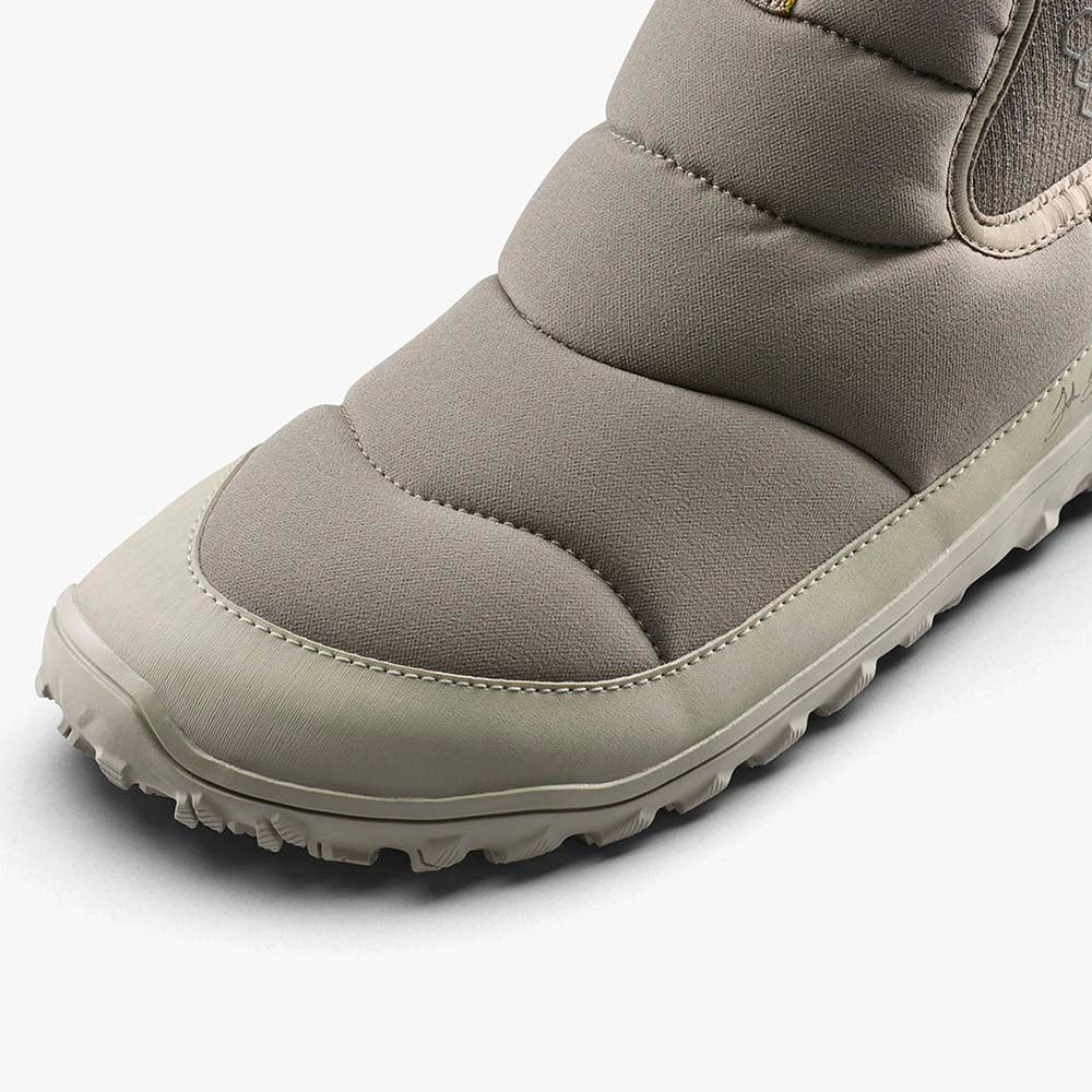 新たな冬の必需品 ベアフットシューズを再定義するライフスタイルブーツ、ゴビハイバーが今年も登場。定番モデル ゴビのシルエットに新たなテイストを加え、ワンランク上のあたたかさを実現。着脱が簡単な伸縮性のあるシューレースと、寒い季節に人気のパッファーコートにインスパイアされたパッド入りの耐水シェルを備えたゴビハイバーは、冬の必需品となることでしょう。 特徴 ワンランク上のあたたかさと快適さを 新しいゴビ・アウトソール糊付けではなく、サイドステッチ仕上げ。 取り外し可能なサーマルインソール サーマルインソールには、熱を吸収、蓄熱、放出する温度調節テクノロジーが内蔵されています。優れた保温層が、自然に変化する足の温度に応じて保温または冷却します。 あたたかい裏地付き 寒い気候でも足元を快適に保てるよう、あたたかい裏地を施しています。 耐水性耐水性のある素材と、非吸水性の素材を使用しています。 重量MENS EU42 片足 400gWOMENS EU38 片足 326g