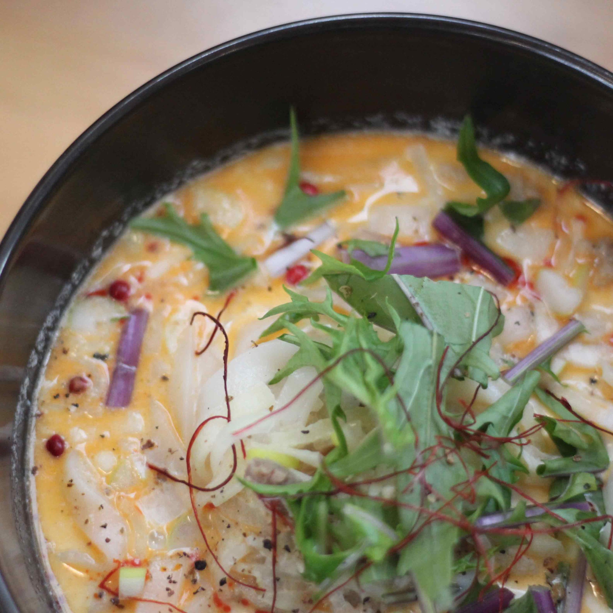 出雲地方は斐伊川の中流に位置する阿用という地域で、山から一番に水が流れる田でお米をつくり米麺をお届けしています。当日はあたたかい米麺スープをお持ちします。