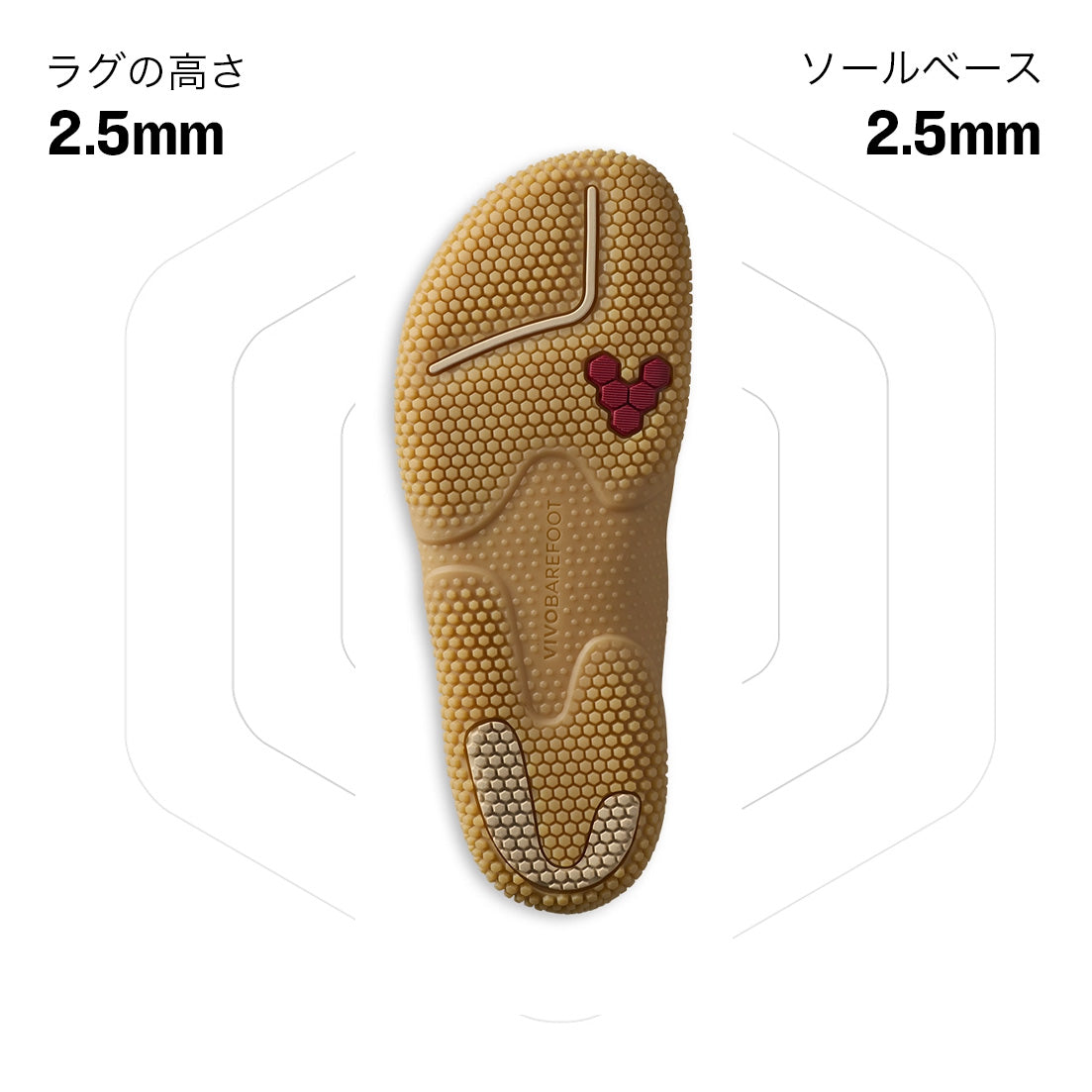 内側には、素足のように柔らかなナチュラルニットのインナーソックを採用。しなやかなワイルドハイドレザーと、ワックス仕上げのスエードアッパーとのコントラストが魅力です。動きやすさ、つながり、そしてスタイルのためにデザインされたこのベアフットスニーカーは、どんな場所へも軽やかに連れていってくれます。
