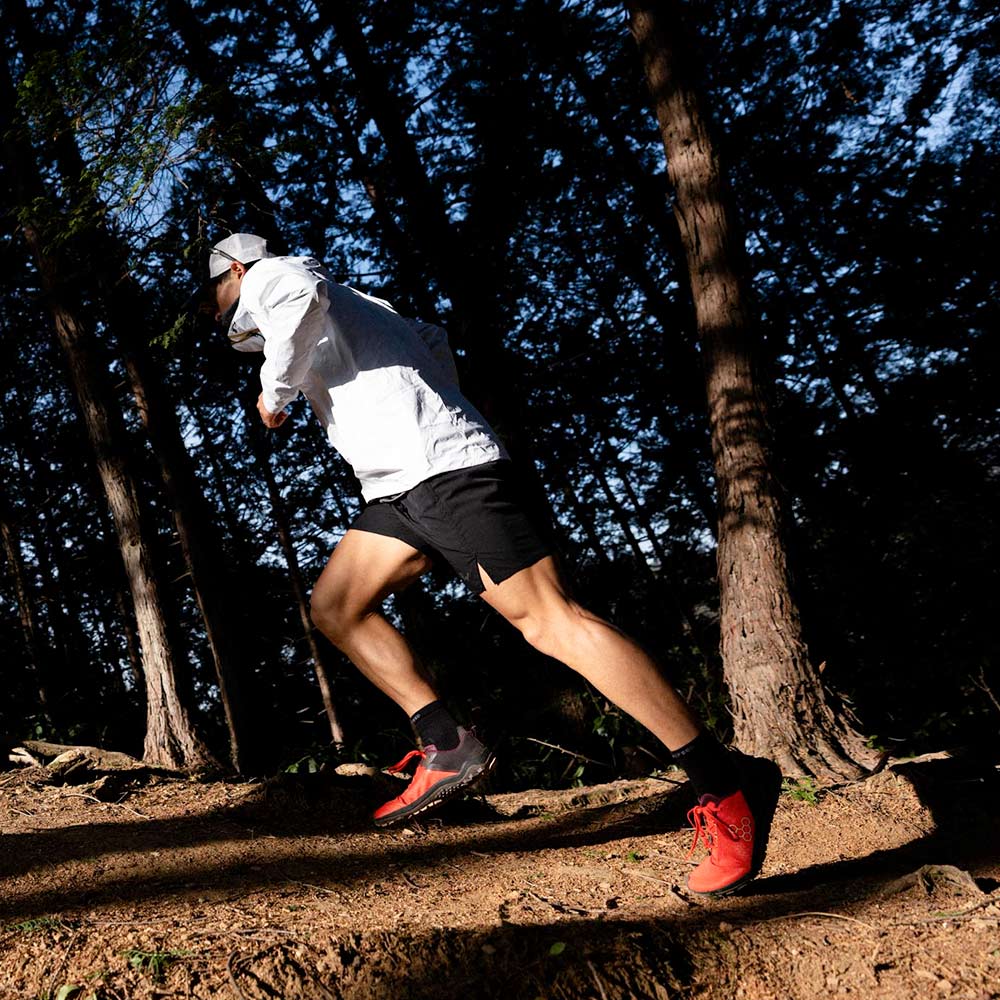 トレイルと自分が一体化するような感覚を、超軽量で柔軟なETPU製4mm厚ミッドソールとオールテレイン(AT)アウトソールがサポート。足裏の感覚はそのままに、トレイル上の小石や枝はしっかりガードします。プライマストレイルフローは、1.8mm厚のソールベースと3.5mm高のラグにより、足元の地面の微細な凹凸までしっかりと感じ取ることができます。オフロードでも、安心して自在に走る楽しみを。
